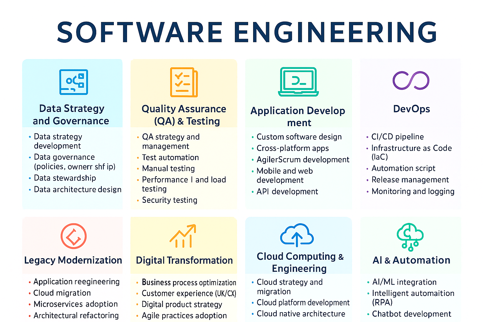 Maximize your business potential with our all-in-one Software Engineering Solutions, offering bespoke services from application development to AI integration.
